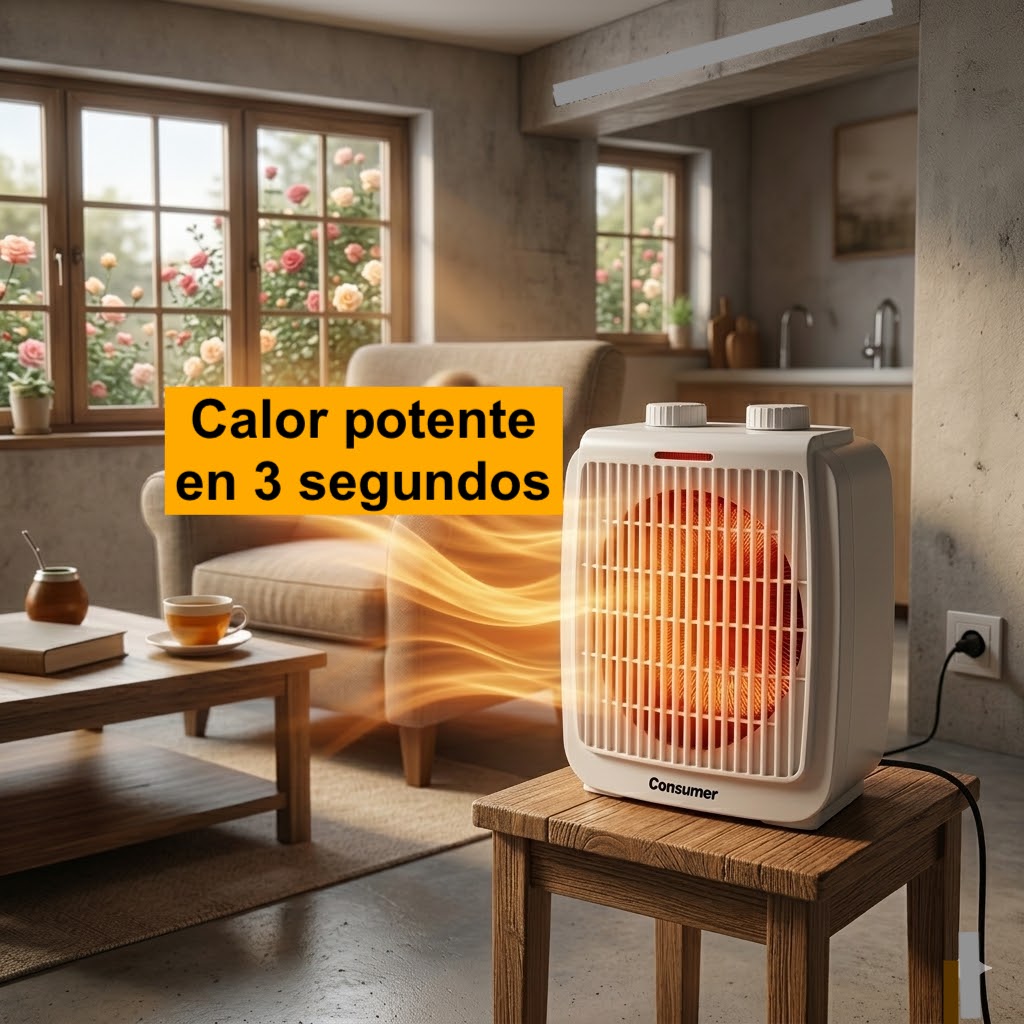 Una solución práctica y segura para calentar rápidamente ambientes pequeños. Tiene dos niveles de potencia, función ventilador y un sistema de calentamiento rápido que genera un flujo de calor importante y controlable en 3 segundos. Es ideal para baños, oficinas y pequeñas habitaciones. Compacto y liviano, es muy fácil de trasladar y guardar.