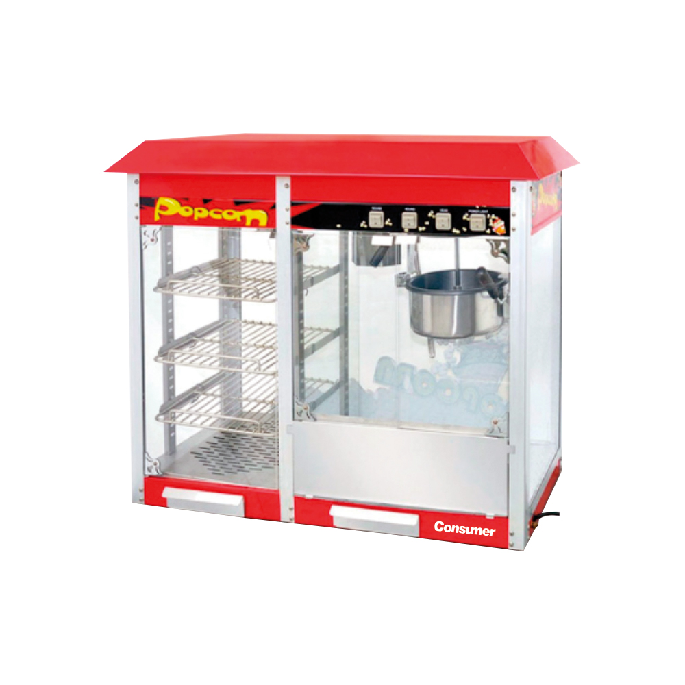 Produce pororó de maíz fresco de forma rápida y suma un espacio calentador con estantes rejilla para exhibir pororó ya servido y listo para despachar. Es un equipo fácil de usar y mantener, diseñado para uso intensivo en negocios y eventos. Es de bajo consumo ideal para lugares con alto movimiento de personas. Puede usarse en el exterior.