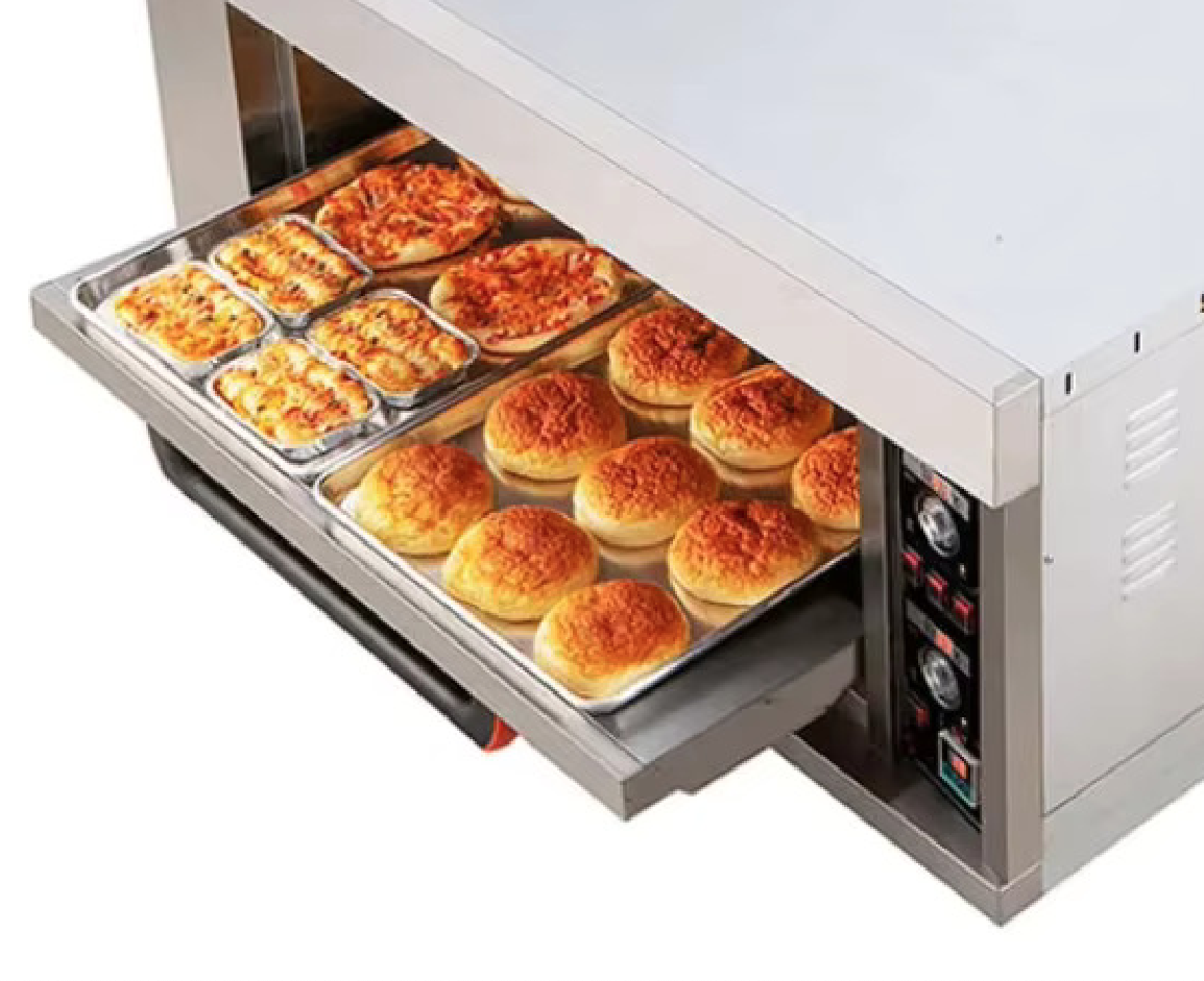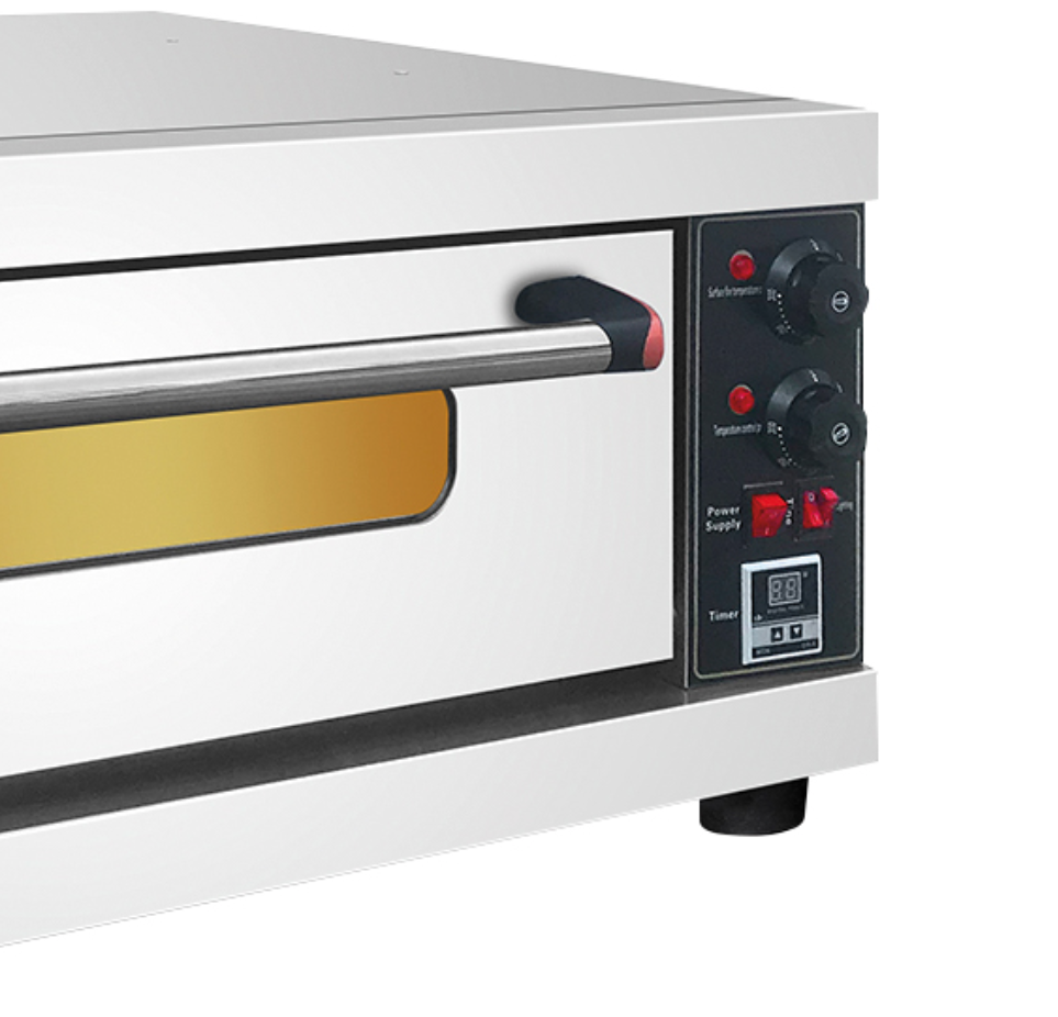 Horno eléctrico de piso y 1 bandeja, amplio y rápido, de dimensiones exteriores reducidas pero de gran capacidad interior. Tiene dos fuentes de calor, superior e inferior con controles independientes. Mantiene la temperatura y ahorra energía eléctrica. Especialmente apto en panadería de alta eficiencia, pero hornea todo tipo de alimentos que requieran un rango de calor de hasta 350°C. No precisa instalaciones eléctricas especiales.