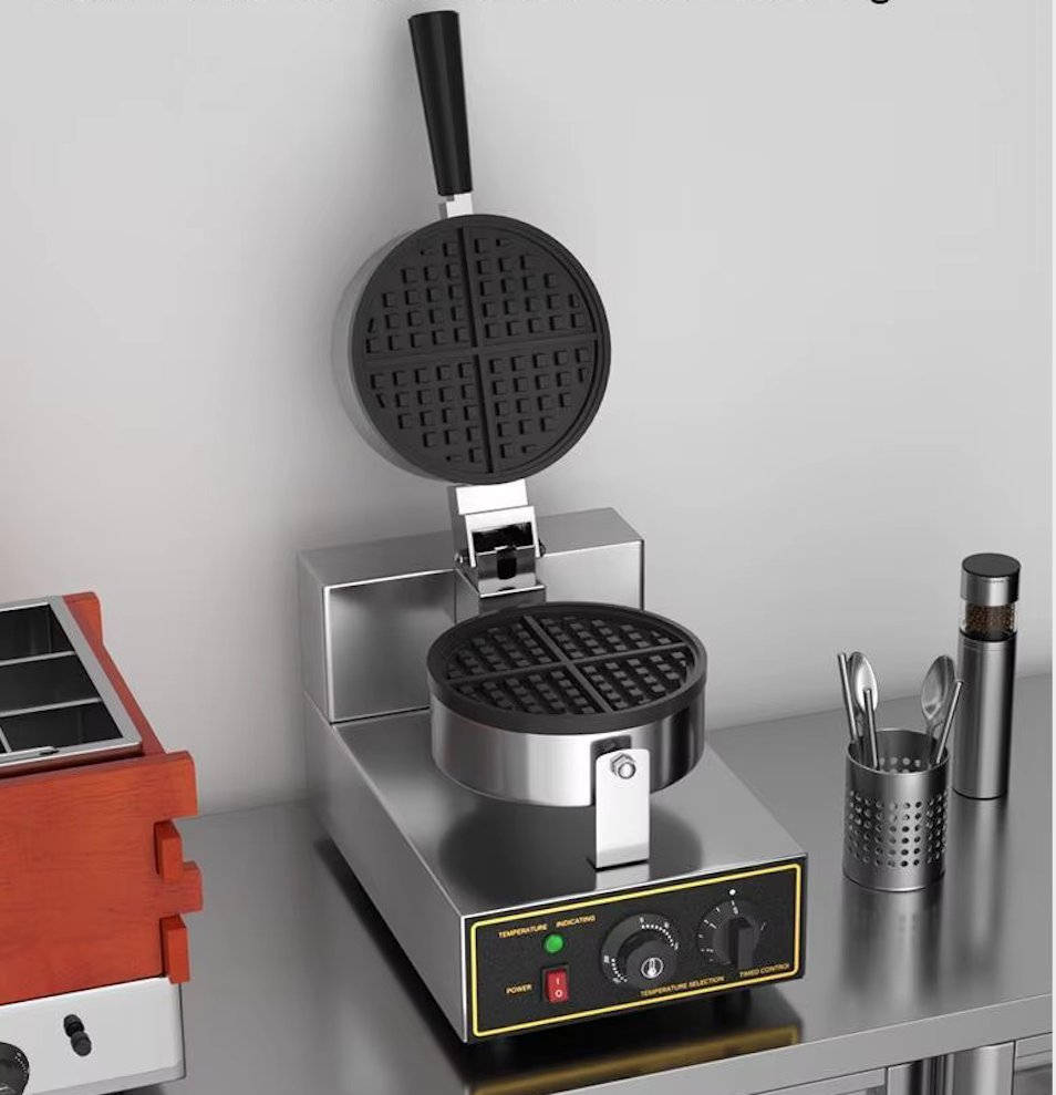 Plancha profesional para wafles, paninis, quesadillas y otros. Un equipo potente con resistencias integradas, control de temperatura y 2 placas de cocción antiadherentes, superior e inferior que facilitan el desmoldado de los wafles. La waflera permite crear un menú especial para atraer clientes.