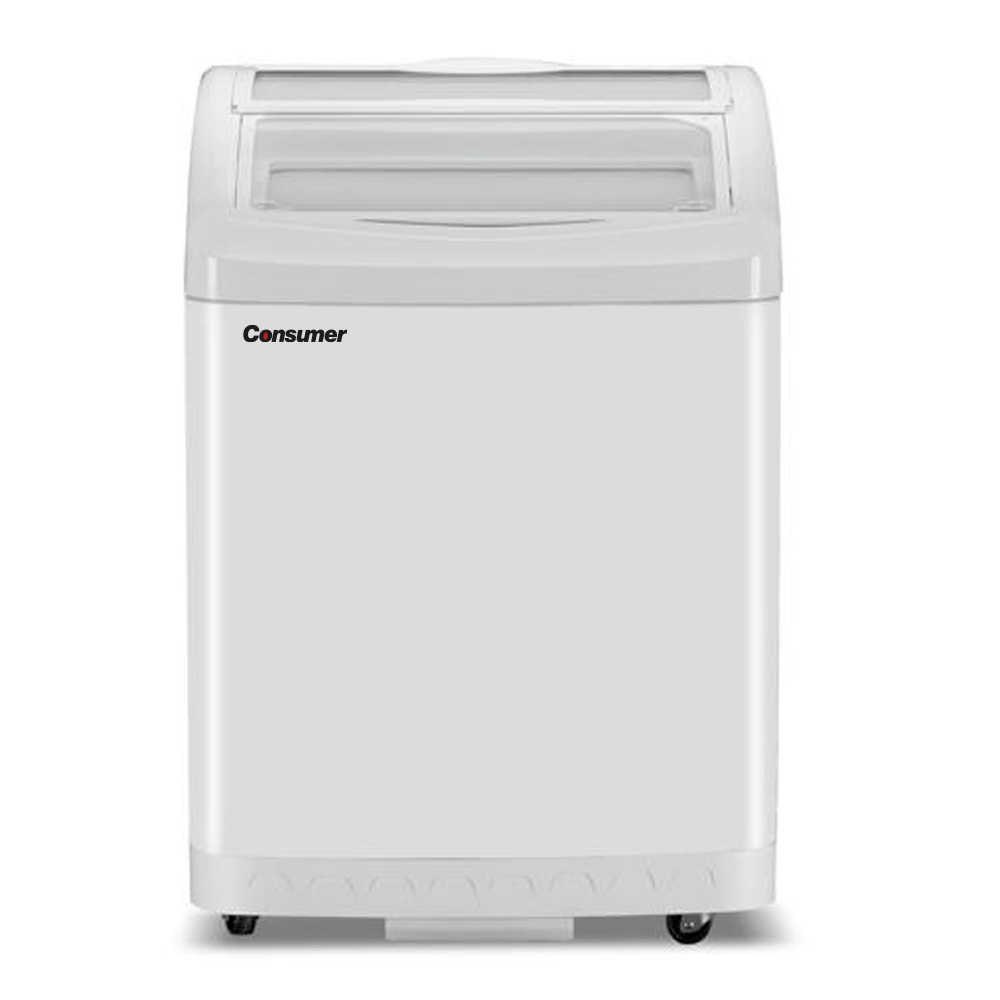 Congelador con tapa de vidrio curvo corrediza, especialmente diseñado para la exhibición y conservación de alimentos congelados en entornos comerciales, ideal para exhibir helados. La tapa de vidrio ofrece visual atractivo y acceso fácil promoviendo la venta de los productos. Control mecánico que facilita el uso y descongelación manual.