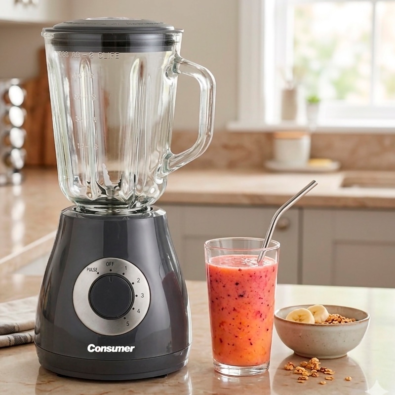 Esta Licuadora ofrece 5 velocidades con pulsador, permitiendo un control preciso sobre las mezclas. Asegura un licuado eficiente y cuenta con traba de seguridad para uso seguro y cómodo en la cocina.