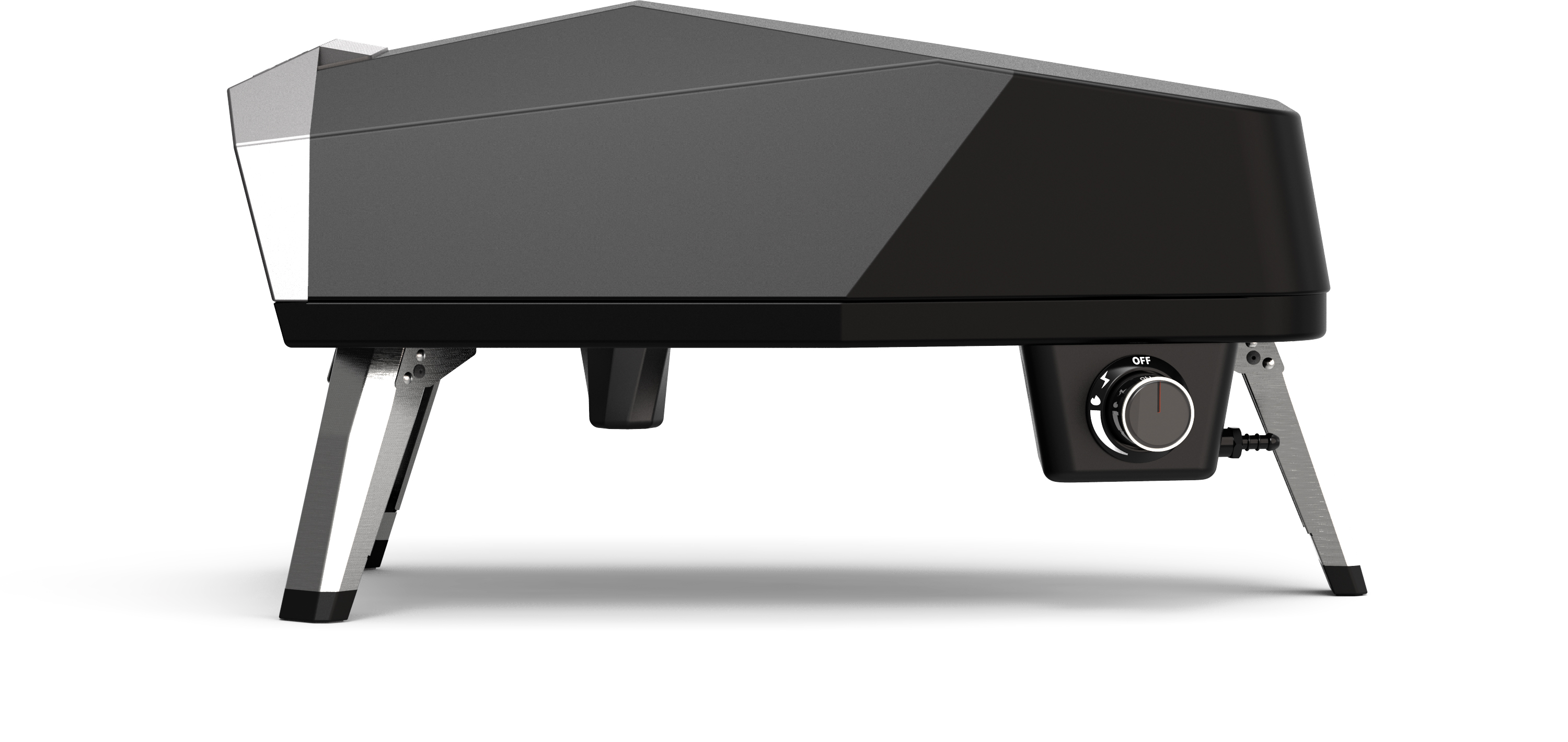 Piedra refractaria rotativa, ignición piezoeléctrica, área de cocción 31x31cm, carcasa de acero inoxidable, Temperatura de 380 grados, cocción en 3 minutos, medida 62x40x33