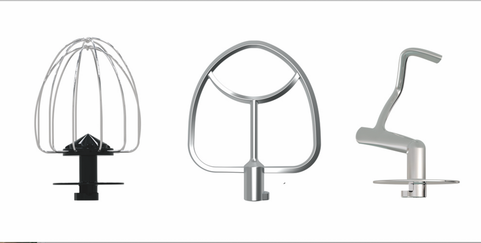 3 accesorios intercambiables: Gancho amasador, Espátula y Batidor - Fácil desmonte y limpieza