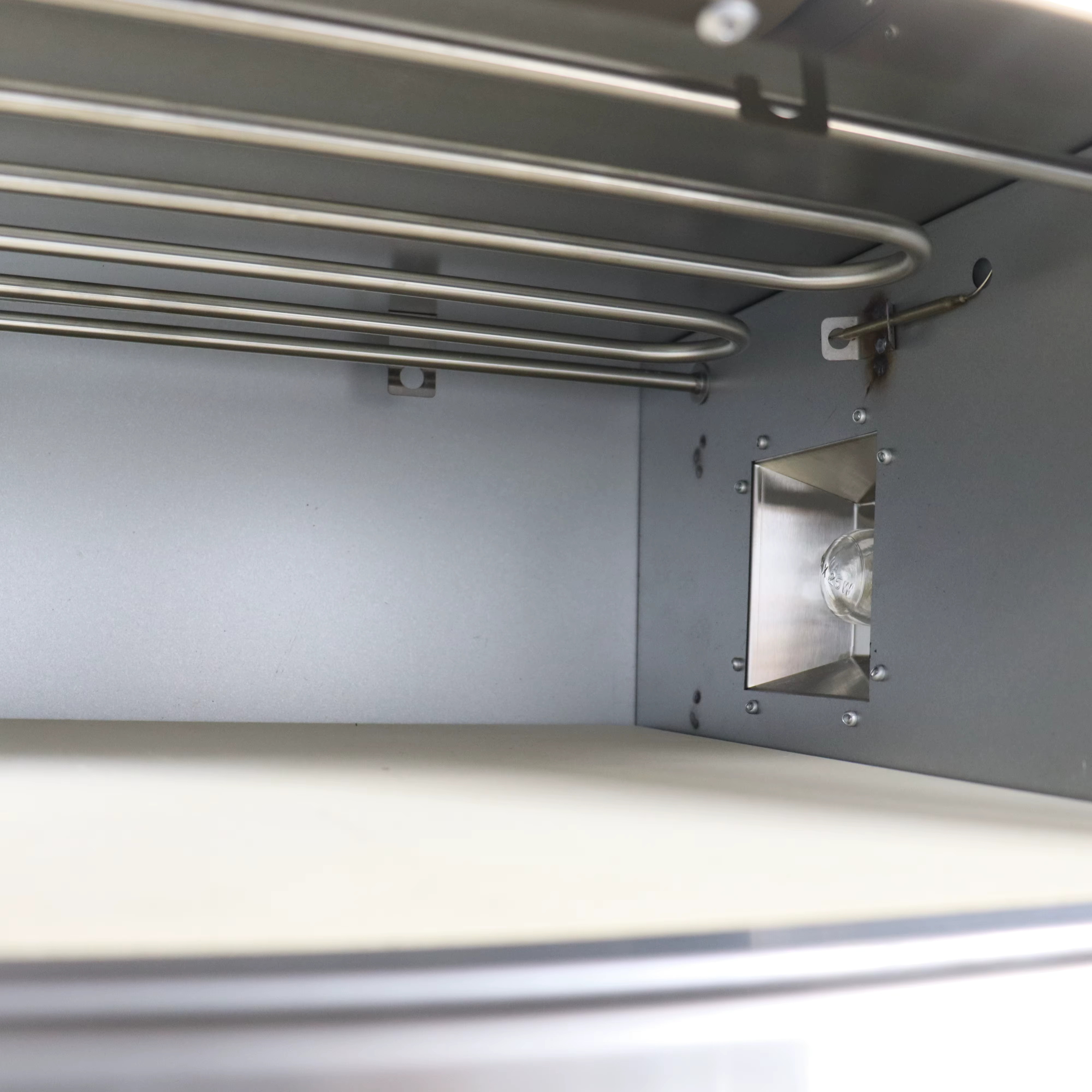 • Puerta reforzada y vidrio de alta temperatura para supervisar la pizza.